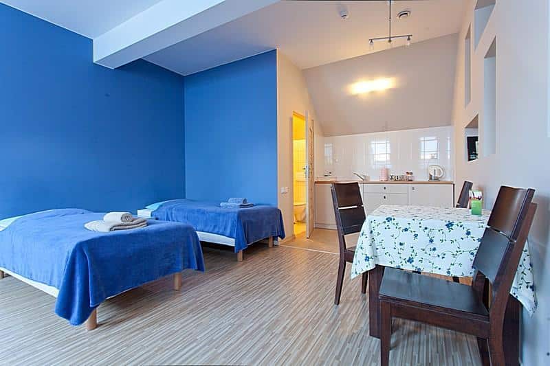 – nowocześnie urządzone pokoje o czterogwiazdkowym standardzie, każdy z prywatną łazienką, aneksem kuchennym, telewizją satelitarną i bezpłatnym Wi-Fi,