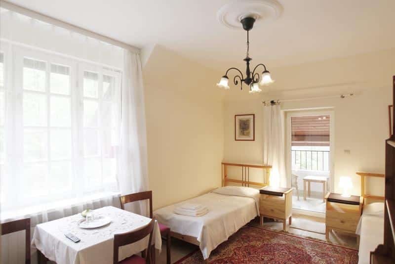– Pięć pokoi dwuosobowych (w tym jeden z łóżkiem małżeńskim),