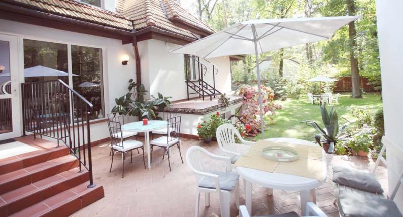 Zapraszamy do Pensjonatu Krzysin, położonego w malowniczej Podkowie Leśnej, zaledwie 25 km od Warszawy. Nasz obiekt znajduje się w spokojnej okolicy, tuż obok Lasu Młochowskiego, otoczony dużym ogrodem z pięknymi sosnami i dębami.