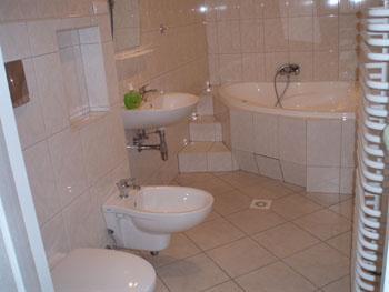 Dla bardziej wymagających gości przygotowaliśmy apartamenty z dodatkowymi udogodnieniami, takimi jak bidet, wanna oraz prywatny balkon, idealny do relaksu z widokiem na okolicę.