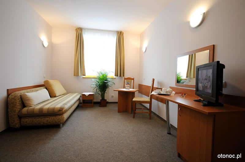 Oferujemy pakiet “Familijny – Pensjonat*”, który obejmuje noclegi w komfortowych pokojach z łazienkami, pyszne śniadania w formie bufetu szwedzkiego w Karczmie, dwudaniowe obiadokolacje z specjalnym menu dla dzieci, atrakcyjny pokój zabaw, możliwość wypożyczenia gier, atestowany plac zabaw dla dzieci, możliwość wypożyczenia żelazka, czajnik w każdym pokoju, telewizję i dostęp do internetu.