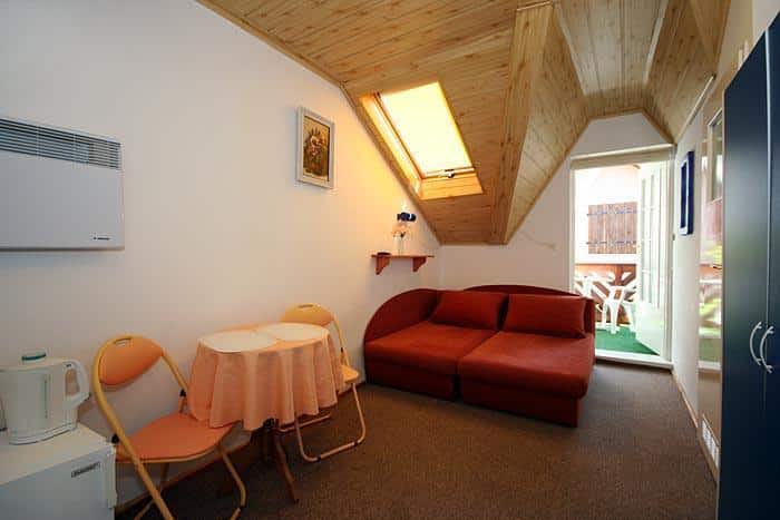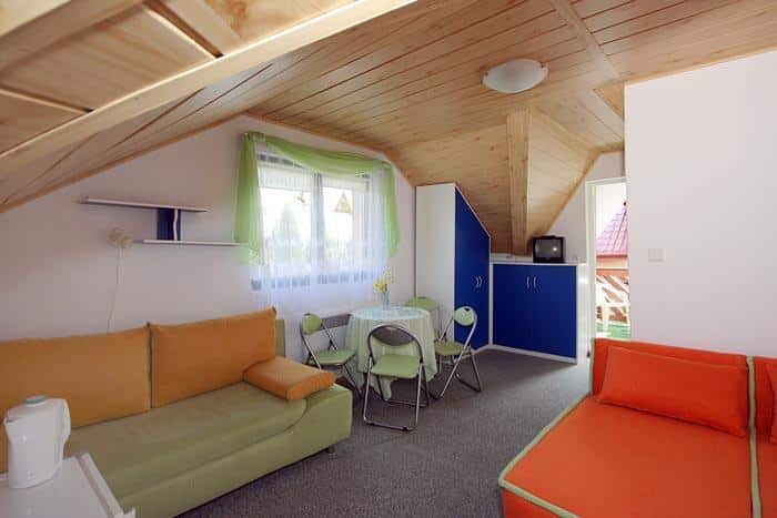 W pensjonacie znajdują się pokoje z łazienkami i balkonami. Do dyspozycji gości posiadamy rownież pokoje z aneksami kuchennymi o podwyższonym standardzie. Na terenie; stoły z parasolami, grill, piaskownica, bujawki i basenik dla dzieci. Na miejscu można wypożyczyć rowery górskie.