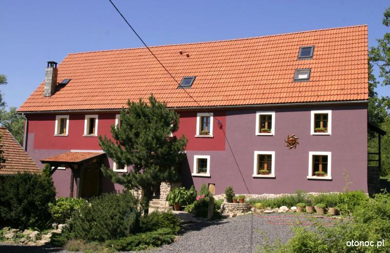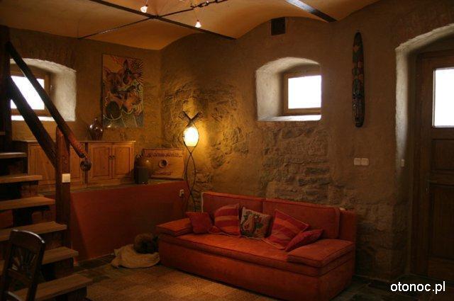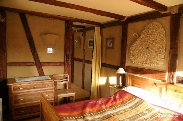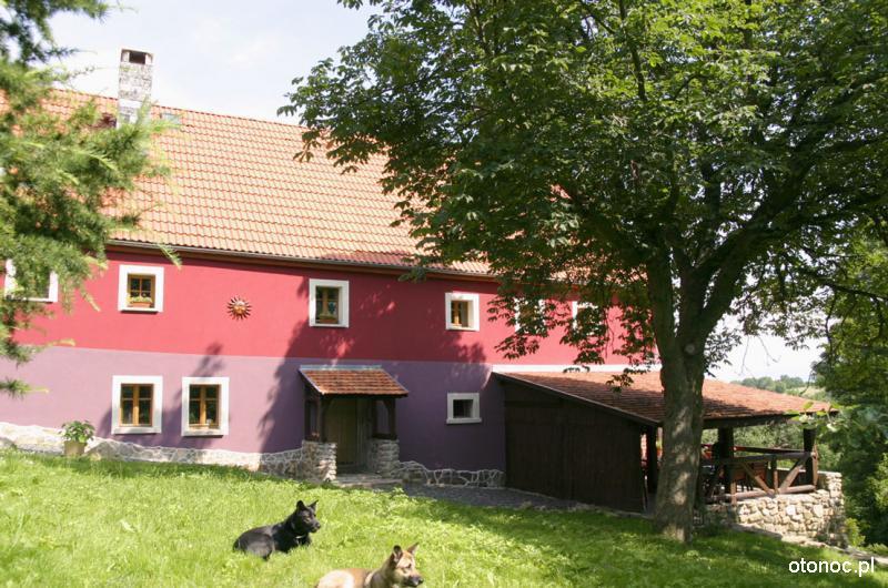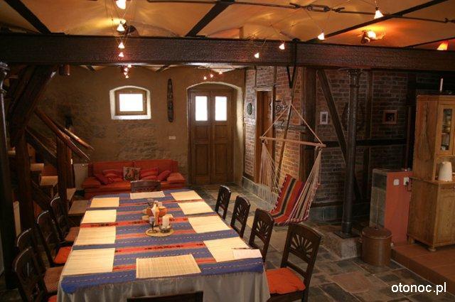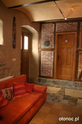 Przestrzeń staraliśmy się zaaranżować tak aby zachować prywatność własnego ogniska domowego i sprawić aby nasi goście czuli się swobodnie. Wnętrza, które urządziła Ania, grają kolorami w ciepłym świetle wśród starych drewnianych konstrukcji, szachulcowych ścian i kamiennych murów. Inspiracją do stworzenia nowej szaty dla tego starego domu była dla nas forma zastana, bogactwo kolorów otaczającego nas świata i własna wyobraźnia.
