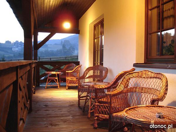 Z salonu można wyjść na taras, gdzie czekają na Państwa wiklinowe stoliki i fotele, idealne na poranną kawę z widokiem na góry.