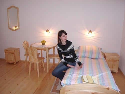 Oferujemy komfortowe pokoje 2-, 3- i 4-osobowe, wyposażone w łazienki z prysznicem, telewizory, ręczniki, szafy, komody nocne oraz bezpłatne Wi-Fi. Do dyspozycji gości jest także ogólnodostępna kuchnia z czajnikiem elektrycznym, lodówką oraz podstawowymi naczyniami. Nasza kuchnia serwuje całodzienne wyżywienie oparte na domowych posiłkach z sezonowych i świeżych produktów z własnego gospodarstwa.