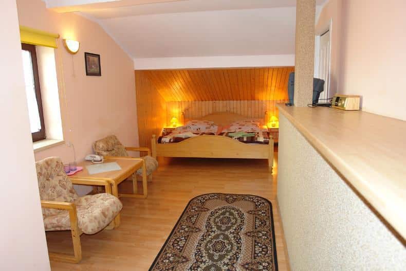 Nasze pokoje są komfortowe i przytulne, dostępne w wersjach jedno-, dwu- lub wieloosobowych, każdy z własnym węzłem sanitarnym. Wyposażone w telewizor, radio, telefon oraz dostęp do WiFi, zapewniają wygodę i relaks. Pensjonat jest również przystosowany do potrzeb osób niepełnosprawnych.