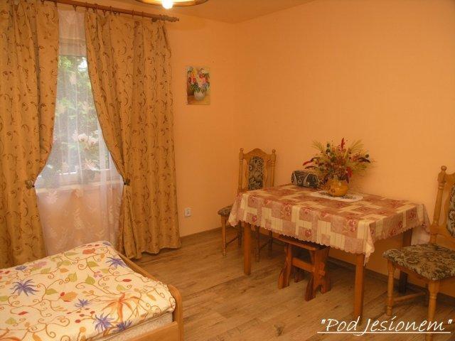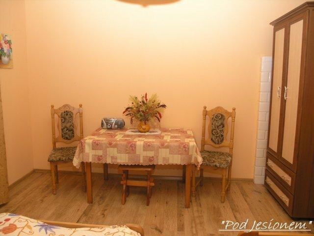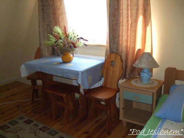 – Wyposażenie: 2-osobowe łóżka z materacami, telewizja satelitarna, szafka, stolik, krzesła, czajnik elektryczny i naczynia,