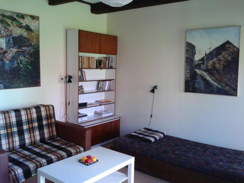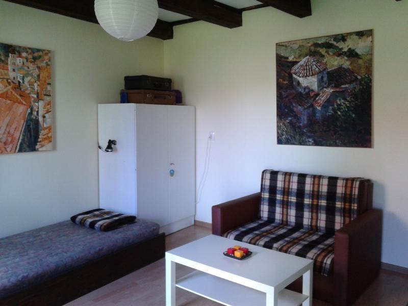 Od 15 czerwca do 15 września domek udostępnia dwa komfortowe pokoje: dwuosobowy i czteroosobowy. Każdy pokój wyposażony jest w telewizor, a goście mają do dyspozycji kuchnię z pełnym wyposażeniem i otwartym kominkiem oraz łazienkę z prysznicem. Na terenie obiektu znajduje się miejsce do grillowania, a także możliwość korzystania z rowerów i Wi-Fi. Domek wynajmowany jest w całości dla grup od 4 do 6 osób, co zapewnia prywatność i komfort.