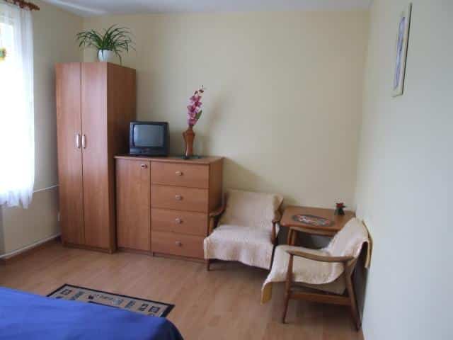 Dla osób poszukujących większej prywatności, oferujemy pokój z łazienką i niezależnym wejściem z podwórka. W tym pokoju również znajdą Państwo telewizor, lodówkę, czajnik, naczynia oraz sprzęt plażowy.