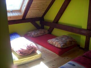 – Dom pod kasztanem: 3 pokoje (1 czteroosobowy, 2 ośmioosobowe), kuchnia, łazienka