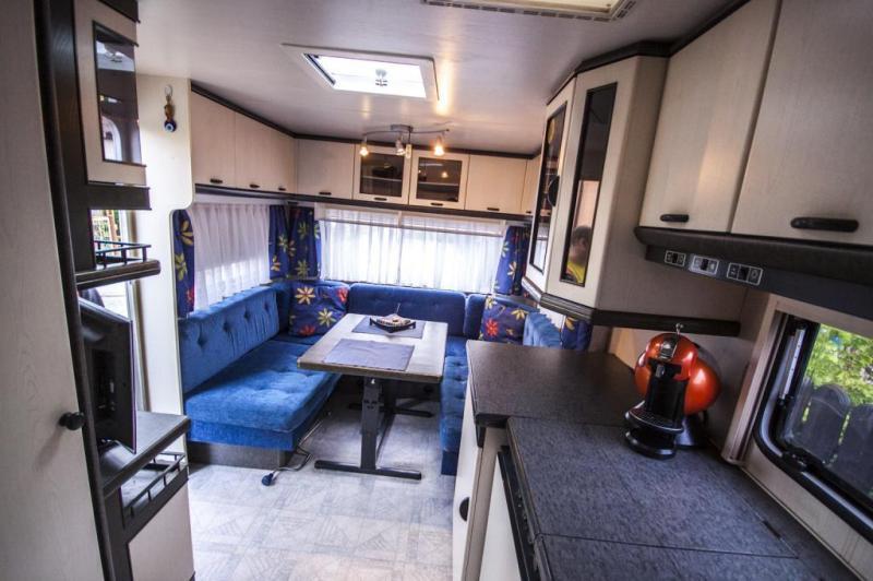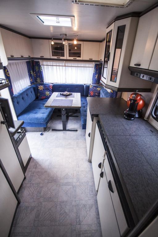 Zapraszamy do wynajmu przyczepy kempingowej marki Hobby z przestronnym przedsionkiem na polu kempingowym CHAŁUPY 6. Nasza przyczepa jest usytuowana w malowniczym miejscu, tuż przy zatoce, co gwarantuje niezapomniane widoki i bliskość natury.