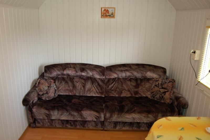 **Kemping 2** to również doskonały wybór dla tych, którzy cenią sobie wygodę i estetykę. W jego wnętrzu znajduje się przestronny salon z aneksem kuchennym, który po rozłożeniu pomieści trzy osoby, oddzielna sypialnia oraz łazienka z ciepłą wodą. Wyposażenie zawiera: