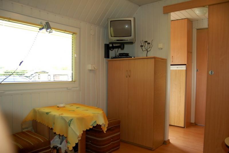 **Kemping 1** oferuje komfort i dbałość o każdy szczegół. Znajdą tu Państwo dwa przytulne pokoje oraz aneks kuchenny z ciepłą wodą, a także przestronny taras, idealny na wieczorne chwile wytchnienia. Wyposażenie obejmuje: