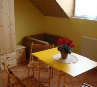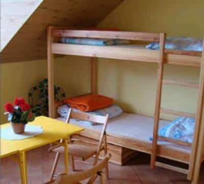 Posiadamy dwa całoroczne budynki murowane (A i B), każdy z nich może pomieścić 100 osób, głównie w 4-osobowych pokojach. Każdy pokój wyposażony jest w oddzielną łazienkę z umywalką, prysznicem i toaletą. W budynku B istnieje możliwość sektorowego rozdzielenia grup. Wszystkie pokoje spełniają standardy kwalifikujące je do wypoczynku dzieci i młodzieży.