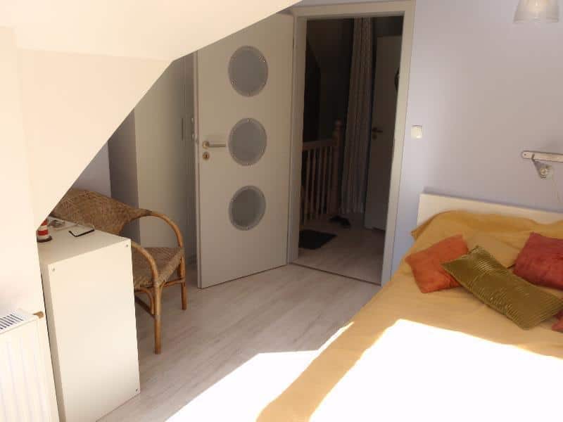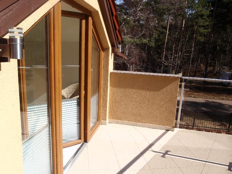 Na poddaszu znajduje się 23-metrowa sypialnia z wygodnym łóżkiem o wymiarach 140/200 oraz słoneczny 10-metrowy taras. Dla dzieci przygotowaliśmy otwartą sypialnię z łóżkiem piętrowym i balkonem. Na tej kondygnacji znajduje się również osobna toaleta. W razie potrzeby, dodatkowe miejsce do spania oferuje rozkładany wypoczynek w pokoju dziennym.