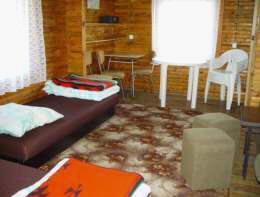 – 16 drewnianych domków wypoczynkowych (10 dostępnych dla gości), każdy o powierzchni ponad 40 m², z pokojem dziennym, sypialnią, kuchnią, łazienką i toaletą,