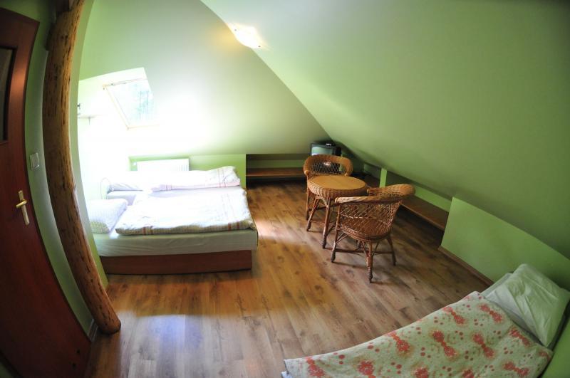 Do dyspozycji gości są trzy całoroczne domki, każdy z łazienką i aneksem kuchennym, mogące pomieścić do 10 osób. Pokoje są wyposażone w łazienkę i telewizor, a dodatkowo oferujemy apartament i ogólnodostępny aneks kuchenny. Na terenie ośrodka znajduje się plac zabaw dla dzieci oraz bezpłatne WiFi.