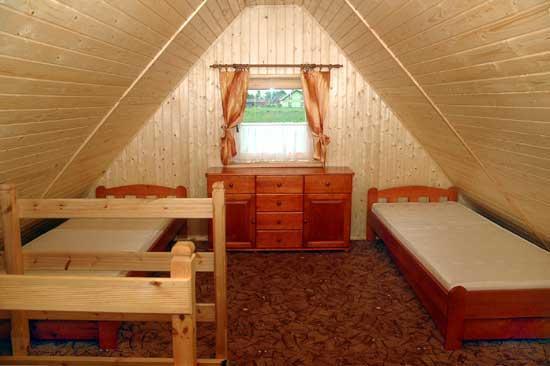 – 5 nowych, drewnianych, dwupoziomowych domków,