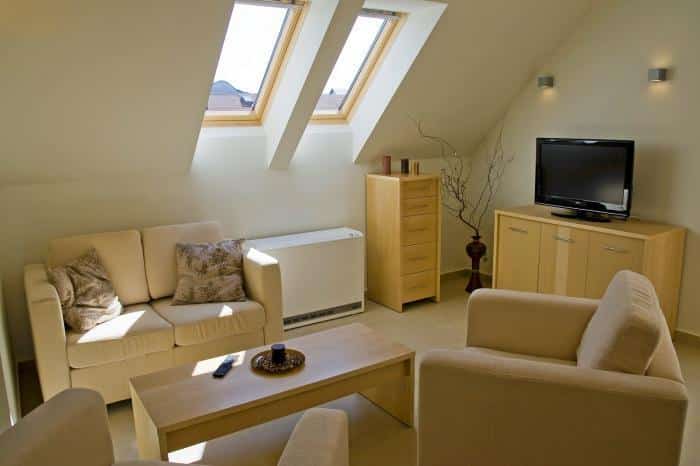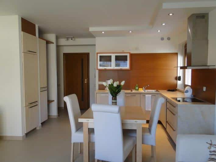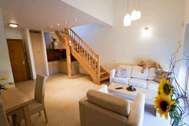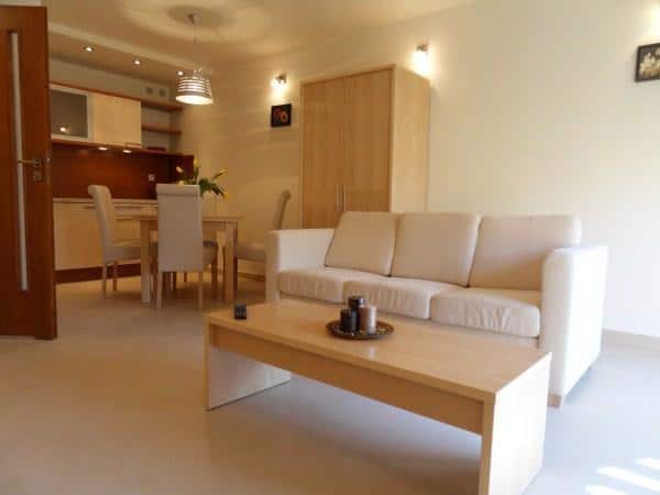 Oferujemy 33 apartamenty o różnej wielkości, od 26m² do 82m². Apartamenty na parterze posiadają ogródki, a na pierwszym i drugim piętrze balkony. Na drugim piętrze znajdują się duże, dwupoziomowe apartamenty, które mogą pomieścić od 2 do 7 osób. Niektóre apartamenty mają widok na morze. Cały obiekt jest monitorowany i dozorowany przez cały rok.