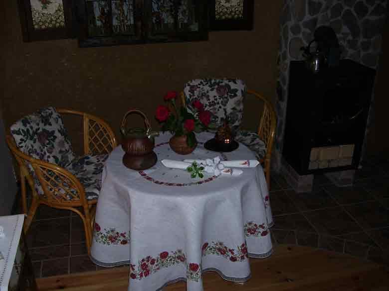 – **Przytulny pokój z kominkiem** – idealny na romantyczne wieczory przy blasku ognia,
