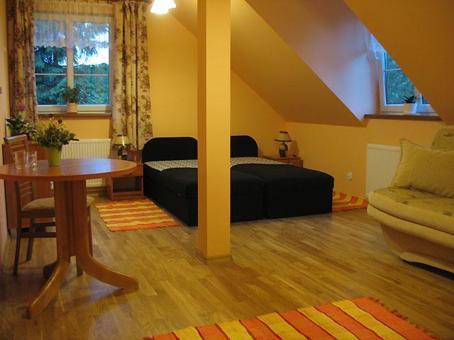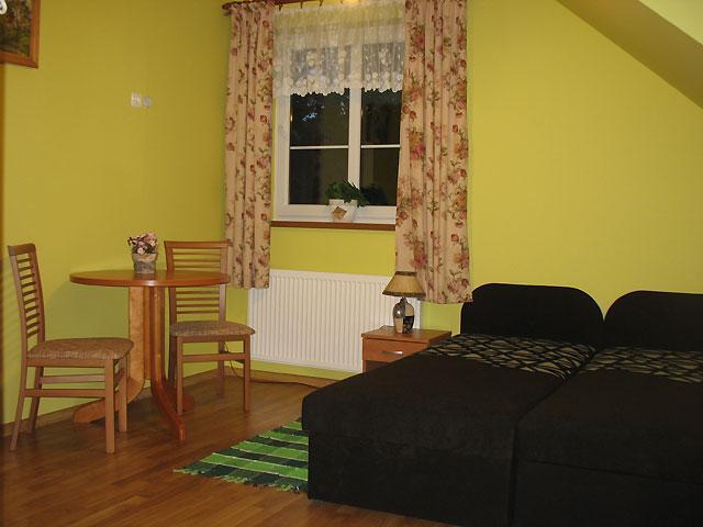Roztoczańska Oaza oferuje komfortowe zakwaterowanie w przestronnych pokojach 2, 3 i 4-osobowych, które łącznie pomieszczą 20 osób. Każdy pokój wyposażony jest w łazienkę i telewizor, co zapewnia wygodę i prywatność. Do dyspozycji gości jest także kuchnia z jadalnią, gdzie można samodzielnie przygotować posiłki, oraz przytulny salon z kominkiem, idealny na wieczorne spotkania.