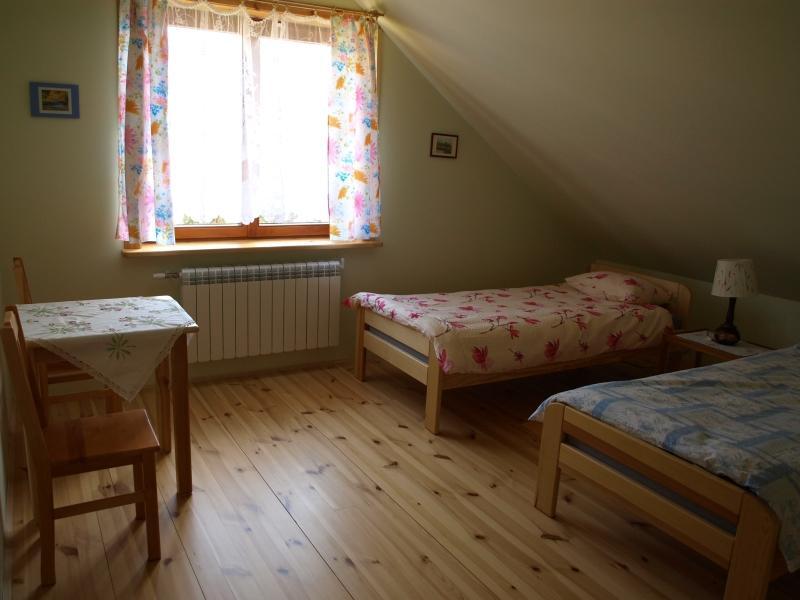 Dom otacza naturalny ogród z pachnącymi sosnami, a przez okna dostrzeżesz widok na rozległe łąki. Wieczorami zapraszamy na ganek, gdzie można wsłuchać się w kojącą muzykę natury. Nasza lokalizacja w obszarze NATURA 2000 to raj dla miłośników ptaków, które często przysiadają na dachu.