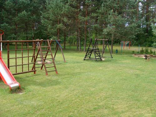 – plac zabaw dla dzieci z huśtawkami, wspinaczką, piaskownicą, wieżą, pociągiem i przeplotnią,