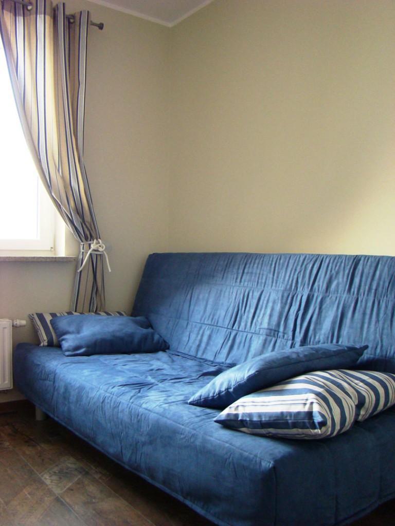 Apartament dysponuje dwoma sypialniami, w każdej dwuosobowe miejsce do spania: szerokie łoże małżeńskie (King) bądź wygodna sofa (Queen). Dodatkowe miejsce do “wylegiwania się” i odpoczynku po emocjach dnia to 3-osobowa sofa z wielką pufą umiejscowiona naprzeciw TV :O).