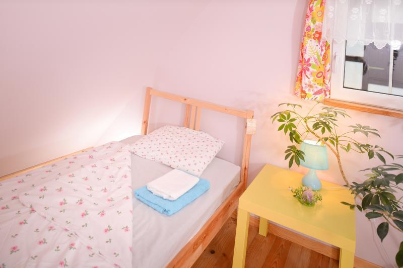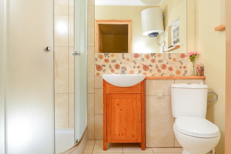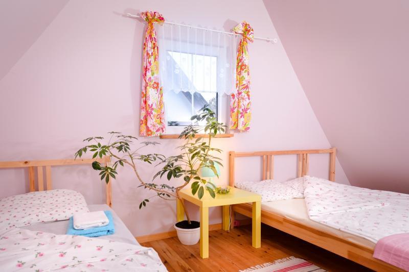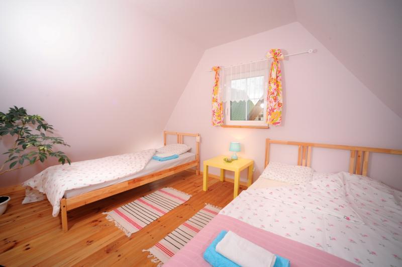 – Dwie sypialnie na piętrze: każda z łóżkiem dwuosobowym i jednoosobowym.