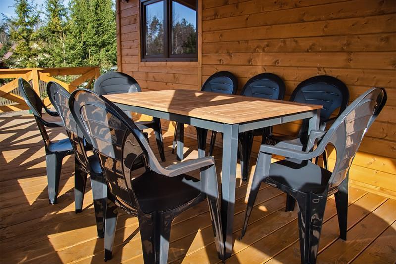 Na zadaszonym tarasie znajdują się grill i meble ogrodowe, idealne na deszczowe dni.