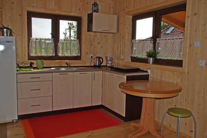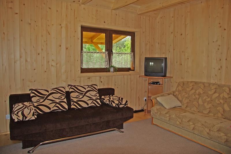 Słoneczna Chata może pomieścić do ośmiu osób. Na parterze znajduje się: