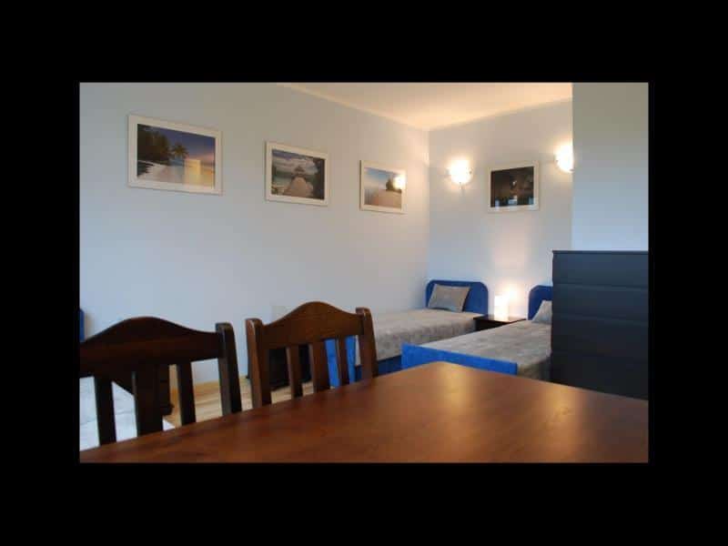 – Pokoju dziennego (19 m²) z 3 pojedynczymi łóżkami, stołem, krzesłami, szafą, komodą i telewizorem z dostępem do telewizji kablowej. Możliwość dostawki.