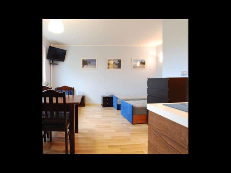 – Aneksu kuchennego wyposażonego w lodówkę, płytę grzewczą, czajnik elektryczny, kuchenkę mikrofalową, garnki, patelnię, naczynia i sztućce.