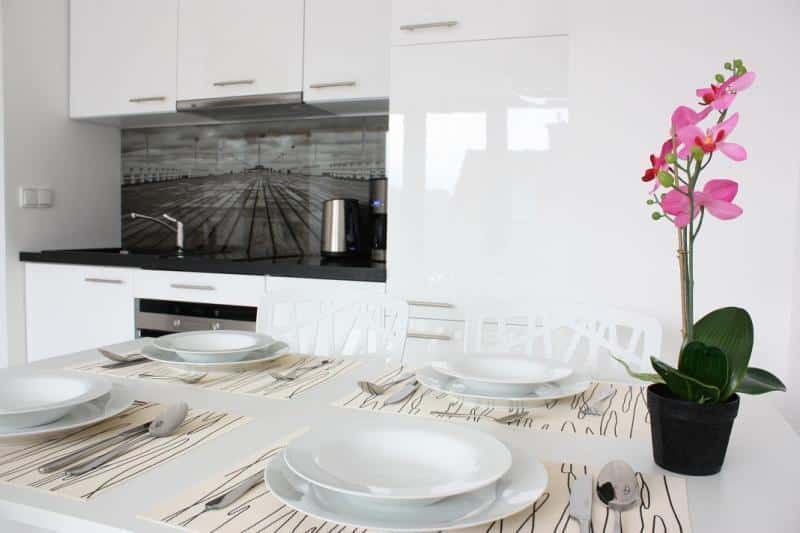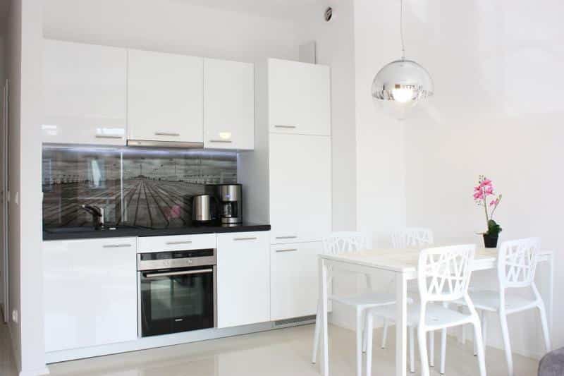 – Aneks kuchenny: zmywarka, lodówka, czajnik bezprzewodowy, indukcyjna płyta ceramiczna, piekarnik, ekspres do kawy,