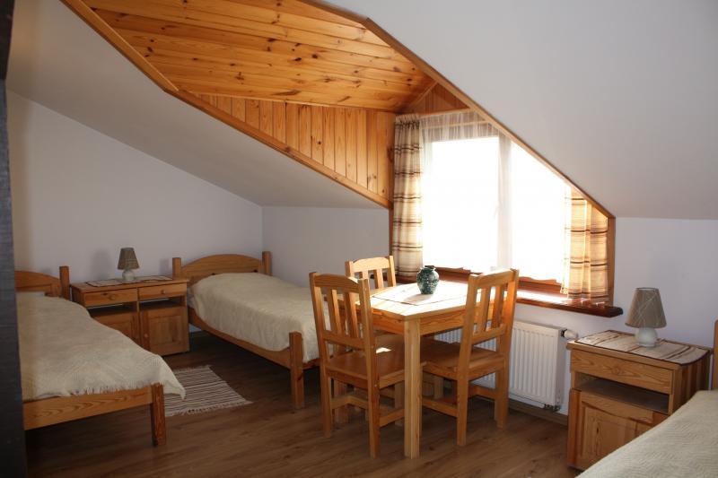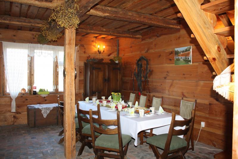 Zachęcamy również do organizacji imprez okolicznościowych, takich jak konferencje, szkolenia, wieczorki panieńskie czy kawalerskie. Posiadamy 6 pokoi z łazienkami, które mogą pomieścić łącznie 14 osób. Do dyspozycji gości jest aneks kuchenny, jadalnia, telewizor i DVD. Na terenie gospodarstwa znajduje się także oddzielny budynek z kuchnią oraz salą do organizowania imprez, wyposażony w kominek i dużą wiatę. Na zewnątrz można zorganizować ognisko lub grillowanie.