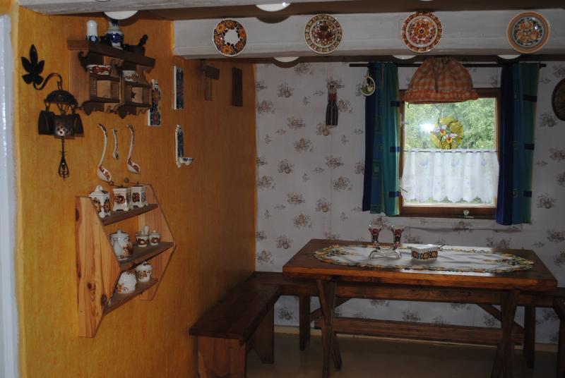 Chata dysponuje 5 komfortowymi pokojami, które pomieszczą do 8 osób. Do dyspozycji gości są dwie łazienki oraz przestronna kuchnia wyposażona w wiejski piec, lodówkę i płytę gazową. Na zewnątrz czeka miejsce na ognisko oraz wygodny parking.