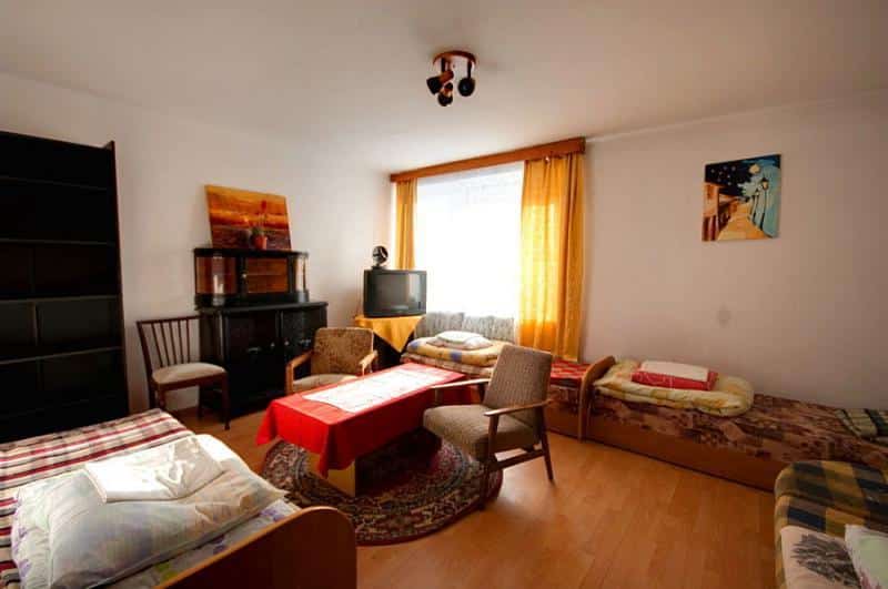 – Apartamenty dla 4 osób z sypialnią, salonem z telewizją satelitarną oraz pełnym węzłem sanitarnym.