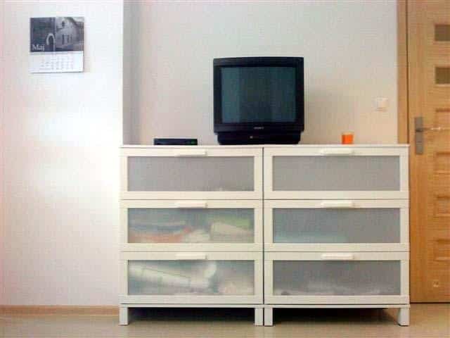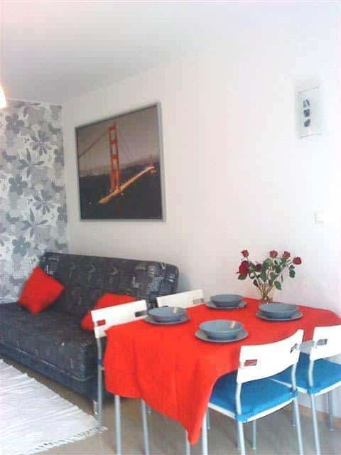 Apartament znajduje się na drugim piętrze i jest przystosowany dla 5 osób. W jego skład wchodzi przestronny salon z dwuosobową wersalką oraz sypialnia z łóżkiem piętrowym dla dwóch osób. Dodatkowe miejsce noclegowe zapewnia komfortowy pobyt dla piątej osoby. Kuchnia jest w pełni wyposażona, co umożliwia samodzielne przygotowanie posiłków. Znajdziesz w niej płytę grzewczą, lodówkę, czajnik, kuchenkę mikrofalową oraz niezbędne akcesoria kuchenne. W łazience czeka na Ciebie prysznic z hydromasażem, wc oraz umywalka.