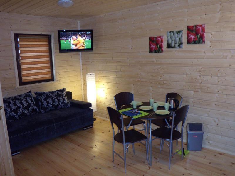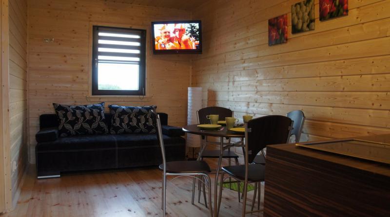 – Salon z jadalnią, rozkładaną sofą dla 2 osób, telewizorem LCD 32″, radiem oraz stołem z krzesłami,