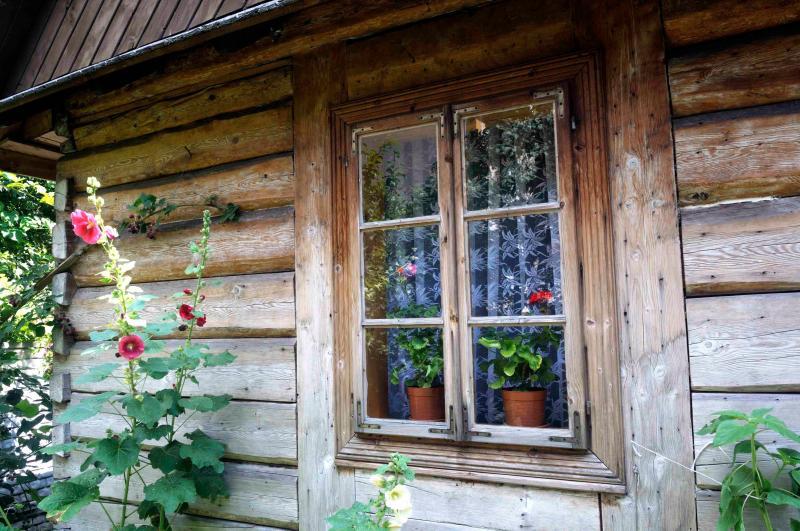 Ten oryginalny drewniany dom, zbudowany w stylu świętokrzyskim z wiekowych bali w latach 30. XX wieku, został niedawno odrestaurowany, zachowując swój unikalny charakter, ale oferując nowoczesne udogodnienia.