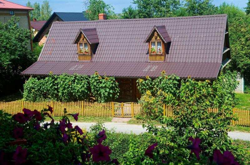 Malownicza weranda, otoczona rzędami pięknych malw i słoneczników, pozwala naszym gościom na relaks po długich dniach spędzonych na wędrówkach po Górach Świętokrzyskich.