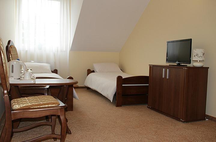 – **Dwanaście pokoi dwuosobowych** oraz jedna jedynka, wszystkie z prywatnymi łazienkami.