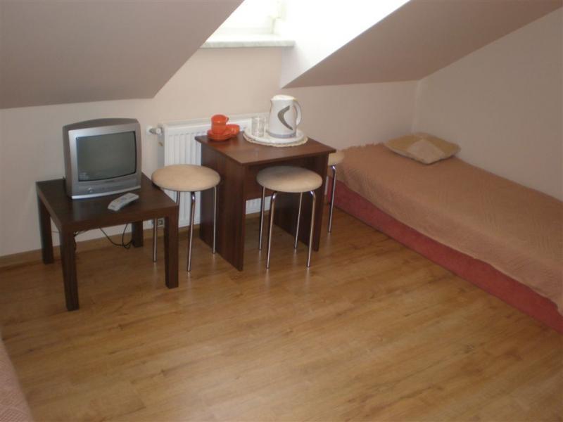 Nasz ośrodek oferuje także komfortowe zakwaterowanie. Pokoje 2-3 osobowe są wyposażone w łazienki i telewizory, co zapewnia maksymalny komfort. Dodatkowo, do dyspozycji gości jest duży aneks kuchenny oraz przestronny salon z kominkiem i telewizorem.