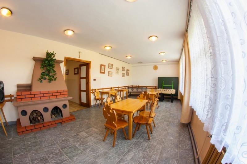 – świetlicę z kominkiem wyposażoną w sprzęt RTV SAT, projektor multimedialny, mikrofon itp. oraz gry planszowe, mapy edukacyjne i lektury dla najmłodszych),