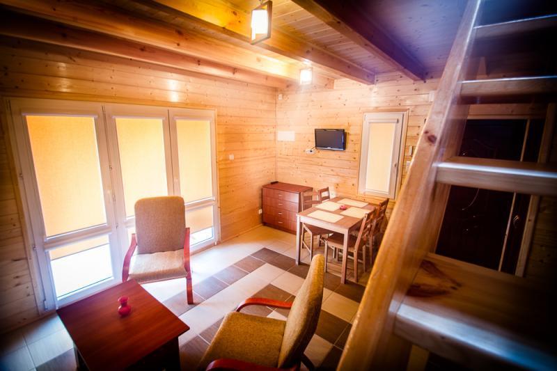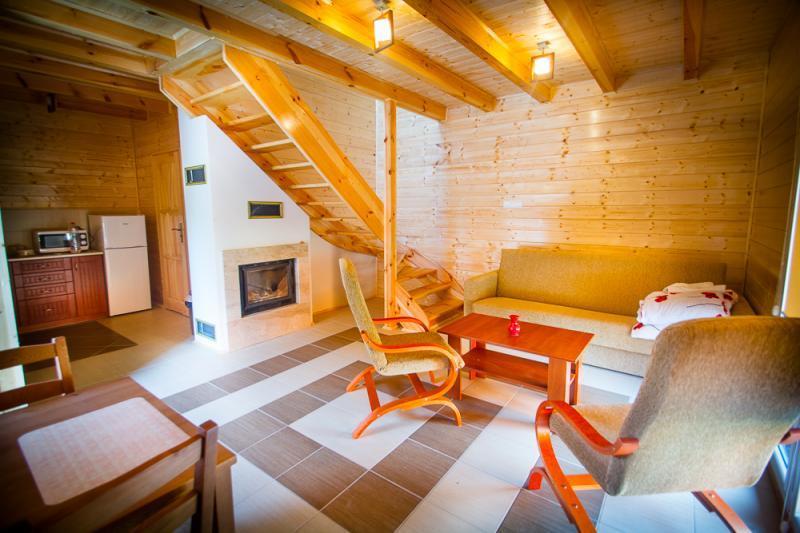Do dyspozycji gości oddajemy komfortowe, drewniane domki całoroczne, które składają się z:
