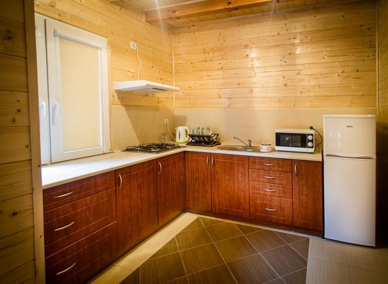 – W pełni wyposażona kuchnia (lodówka, kuchenka gazowa 4-palnikowa, kuchenka mikrofalowa, czajnik elektryczny, naczynia),