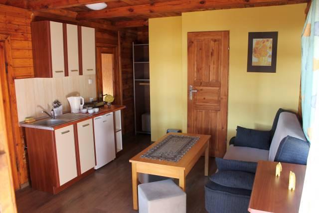 Oferujemy komfortowe domki o różnej wielkości (2, 3, 4, 5, 6, 9 i 13-osobowe), wszystkie wyposażone w taras, łazienkę i aneks kuchenny, co zapewnia wygodę i swobodę podczas pobytu. Cały obiekt jest monitorowany, ogrodzony i zamykany na noc, co gwarantuje bezpieczeństwo naszych gości.