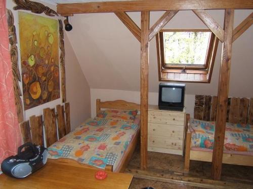 Oferujemy komfortowy pobyt w dwóch przestronnych pokojach, które pomieszczą od 3 do 4 osób. Każdy pokój wyposażony jest w umywalkę, telewizor oraz radioodtwarzacz CD, co zapewnia wygodę i relaks po dniu pełnym wrażeń. Do dyspozycji gości jest także mały aneks kuchenny, idealny do przygotowania śniadań i kolacji.