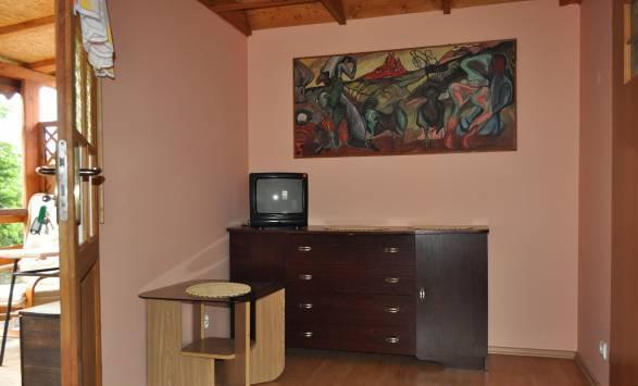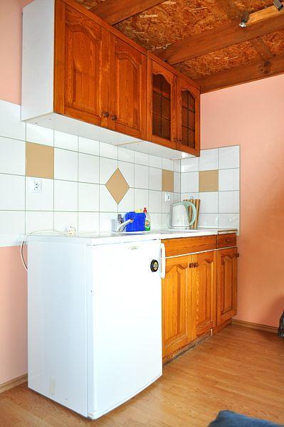– Aneks kuchenny z pełnym wyposażeniem: sztućce, szklanki, talerze, czajnik elektryczny i lodówka,