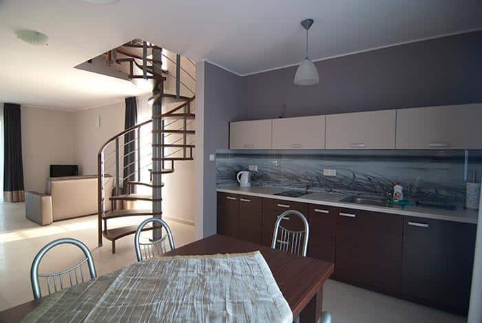 – 4 z tych apartamentów mają przestronny pokój dzienny z aneksem kuchennym, dwie łazienki oraz dwie sypialnie z łożami małżeńskimi,